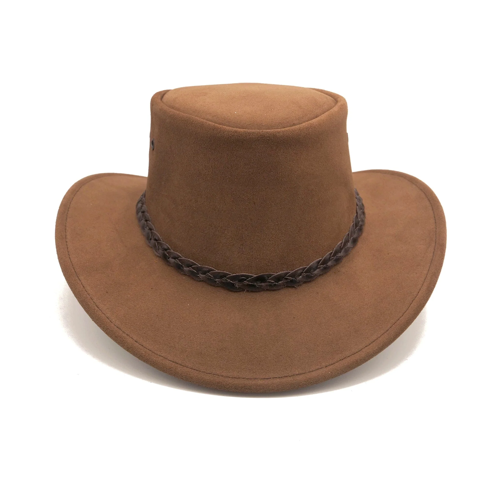 Smooth as a river stone and rugged as the red outback cliffs, the Tennyson Suede Leather Hat exudes an undeniable handsomeness that turns heads wherever you go. Crafted from premium mossback suede leather, it's as durable as an old stockman's boots and built to handle all the wild surprises nature throws your way. It's a hat that laughs in the face of adventure, like a pisspot at an awful pun.