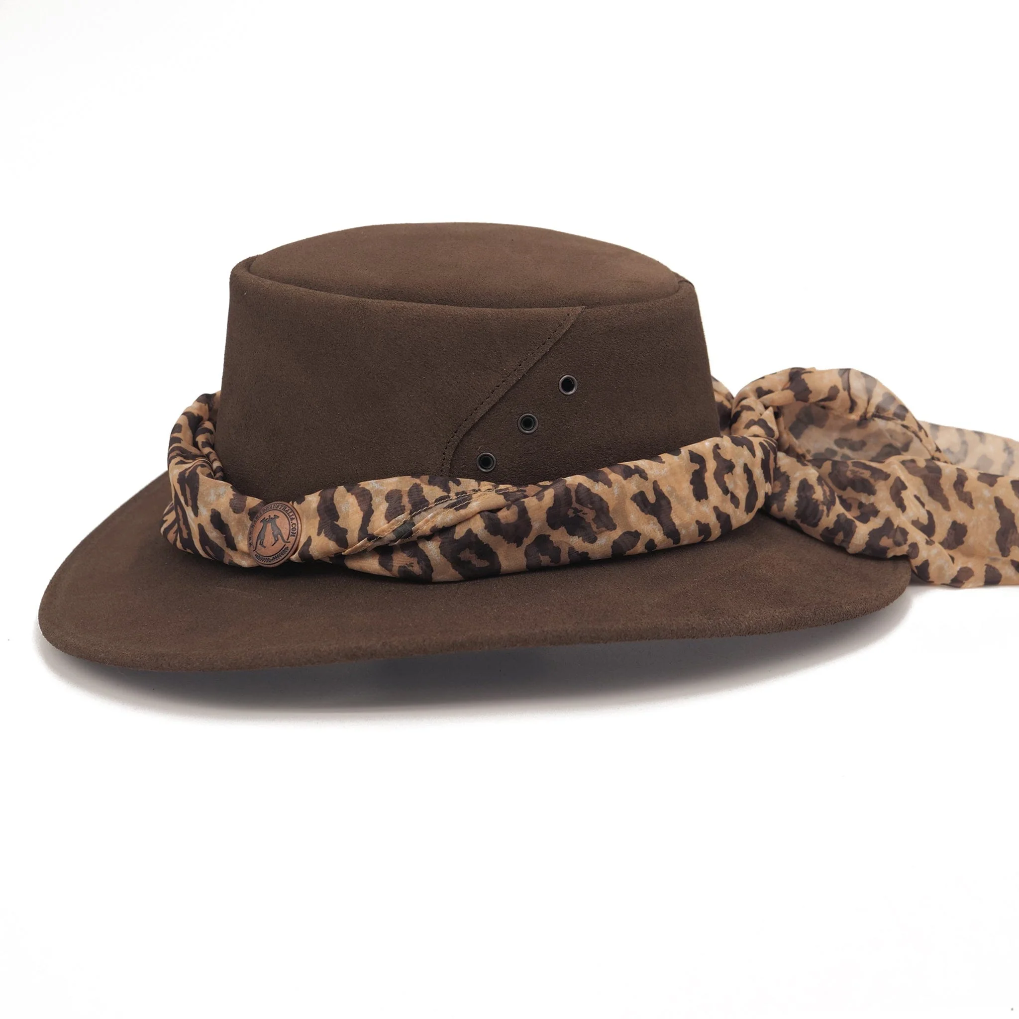 Strap yourself in for a wild ride with the Alice Suede Hat with a Peafowl Scarf, the true-blue choice for tackling the untamed Australian wilderness. Ready to rock in brown, sand, dark brown, and slick black, this hat’s as adventurous as a wallaby on a wander and as sturdy as a wombat's warren.