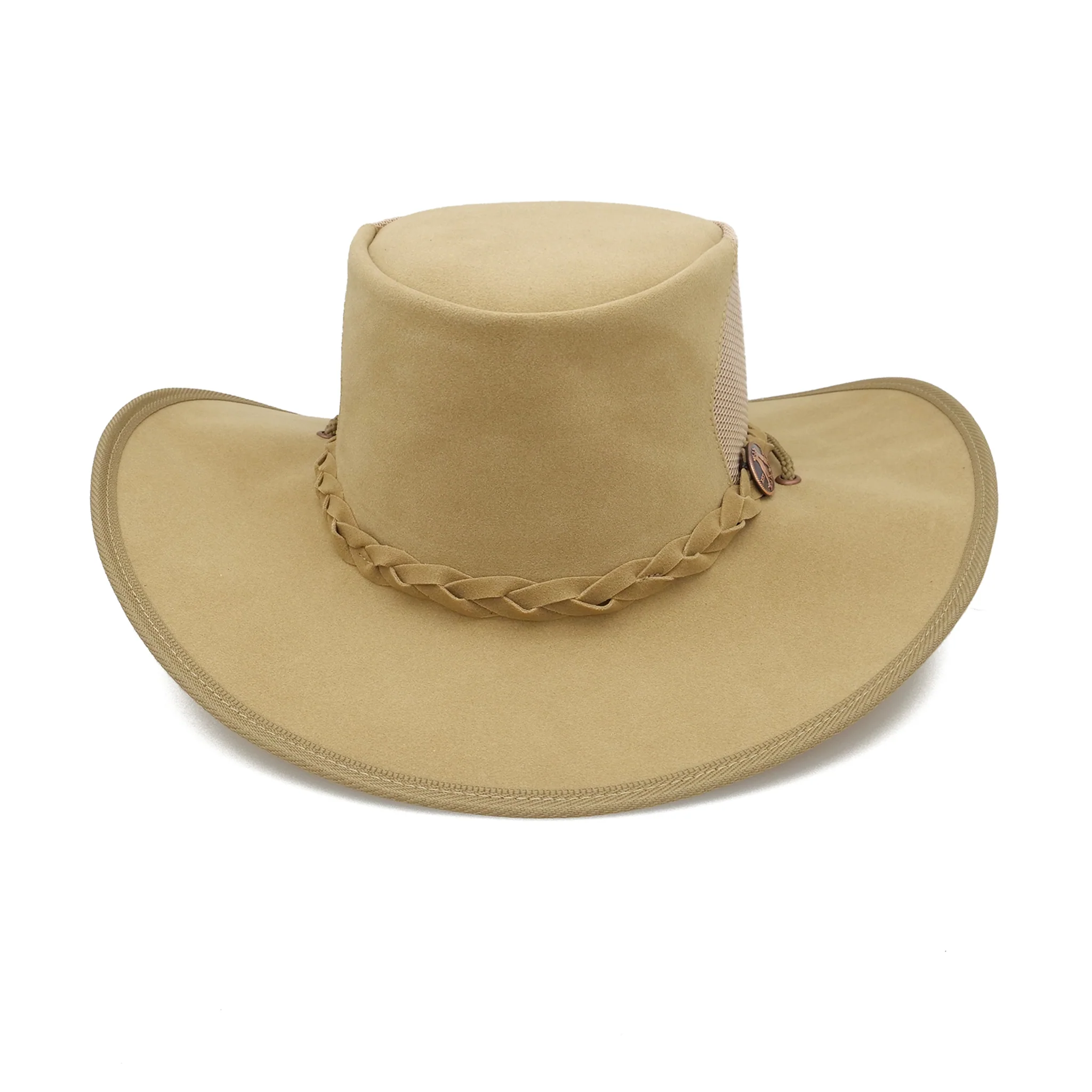 When it comes to tackling the brutal Australian summer, the Bourke Breeze is a true hero. Made with water-resistant Soaka micro-suede, this hat can handle the toughest conditions Mother Nature throws its way. The fabric’s evaporative cooling abilities thanks to our micro-suede fabric. When the going gets hot, simply wet the fabric, and let the magic happen. As the hot air passes through the wet Soaka material, moisture evaporates, creating a refreshing cool breeze around your head. It's like having your own personal oasis in the arid Aussie desert.