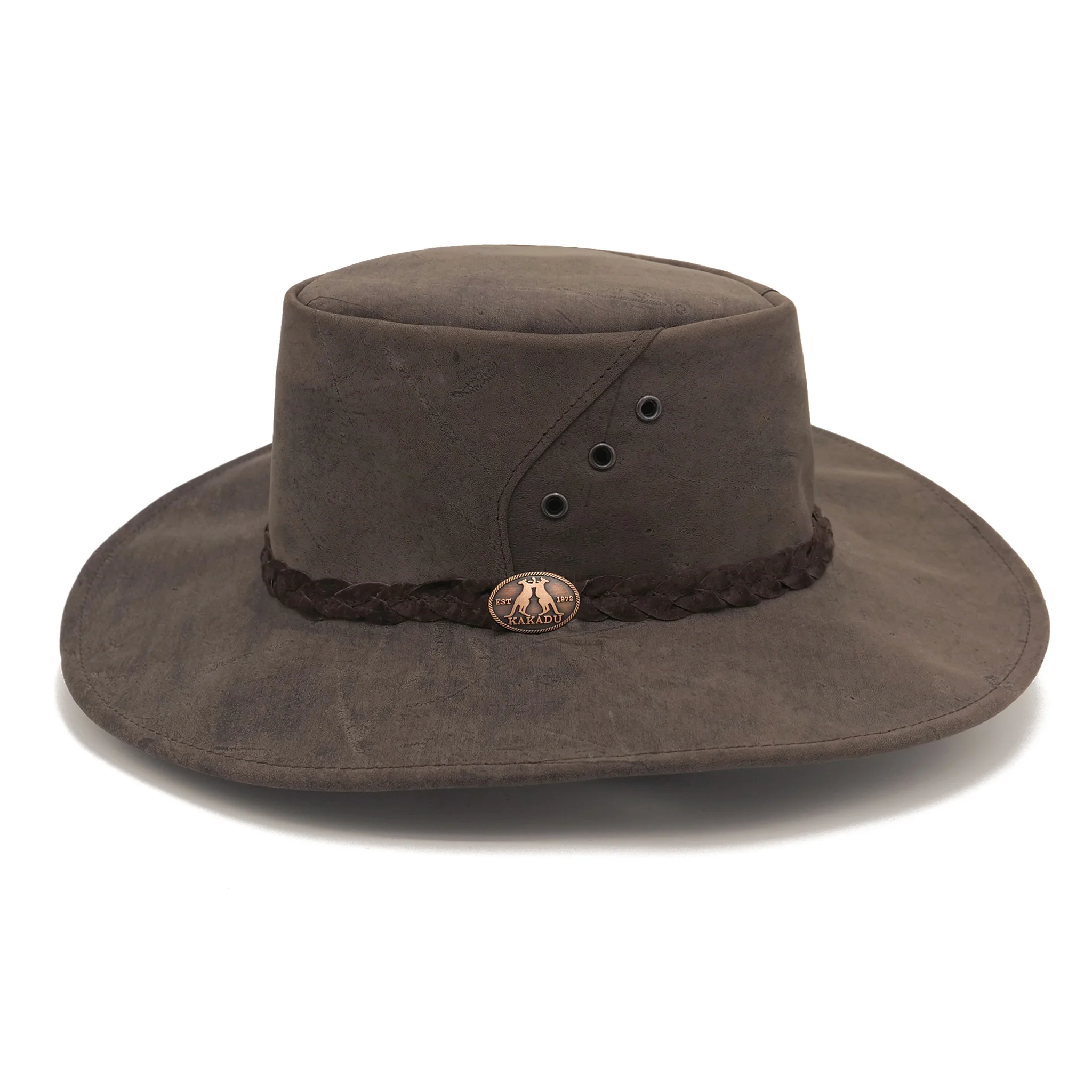 The Darwin Kangaroo Leather Hat is a genuine Aussie outback hat through and through. Its Lowlander Block design pays homage to our rugged landscape and adventurous spirit. And check out that hand-braided hatband with a proud kangaroo badge—it's like wearing a piece of Australia's heritage right on your crown.